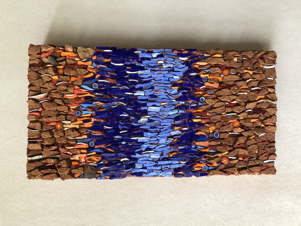Trædesten, 2017. Billede i smalti. 15 x 35 cm. 1600 kr.